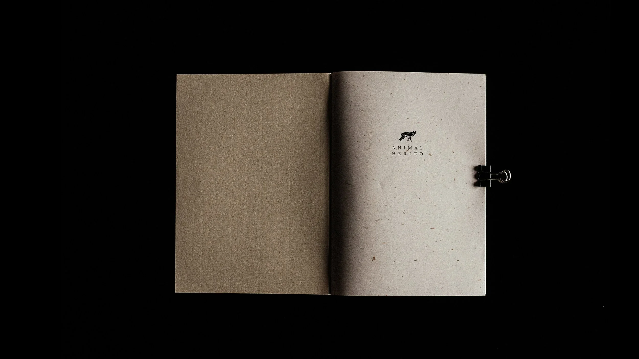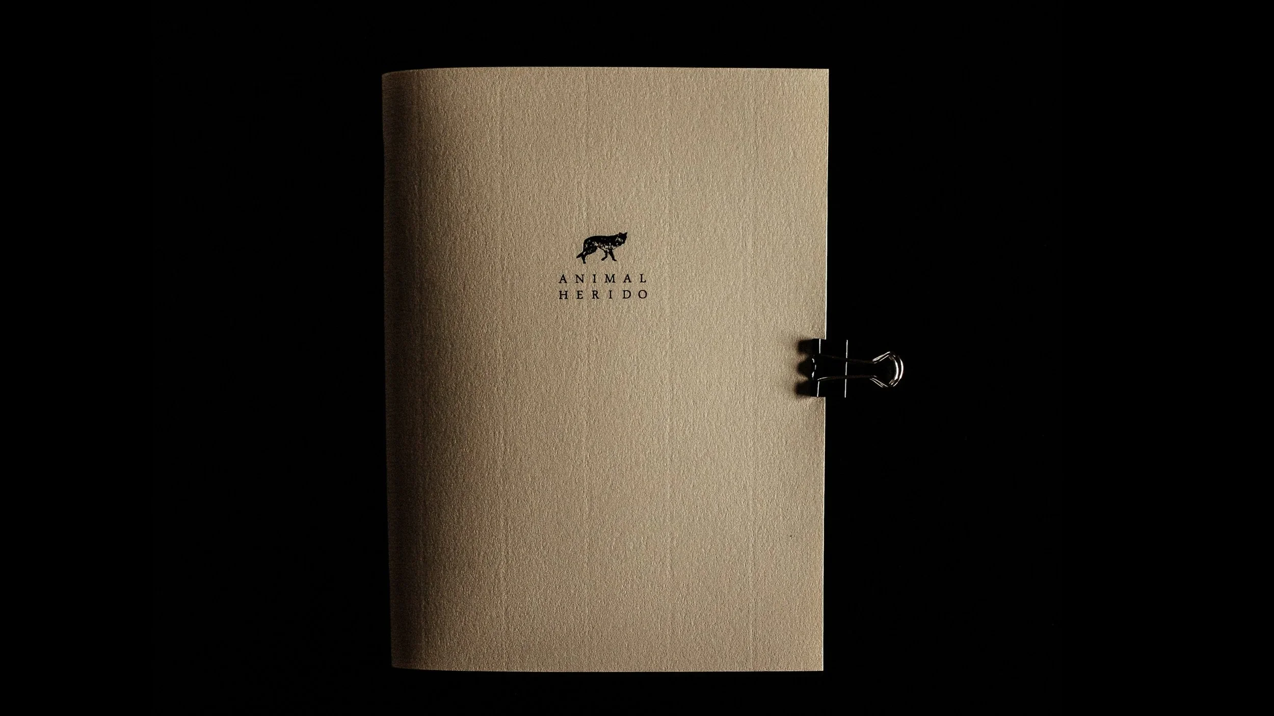Animal Herido narra visualmente una historia a través de una libreta personalizada que, jugando con papeles y texturas, logra reflejar la elegancia de un objeto único, artesanal y duradero, como el lobo herido, que a pesar de cojear sigue pareciendo fuerte bajo la luna.