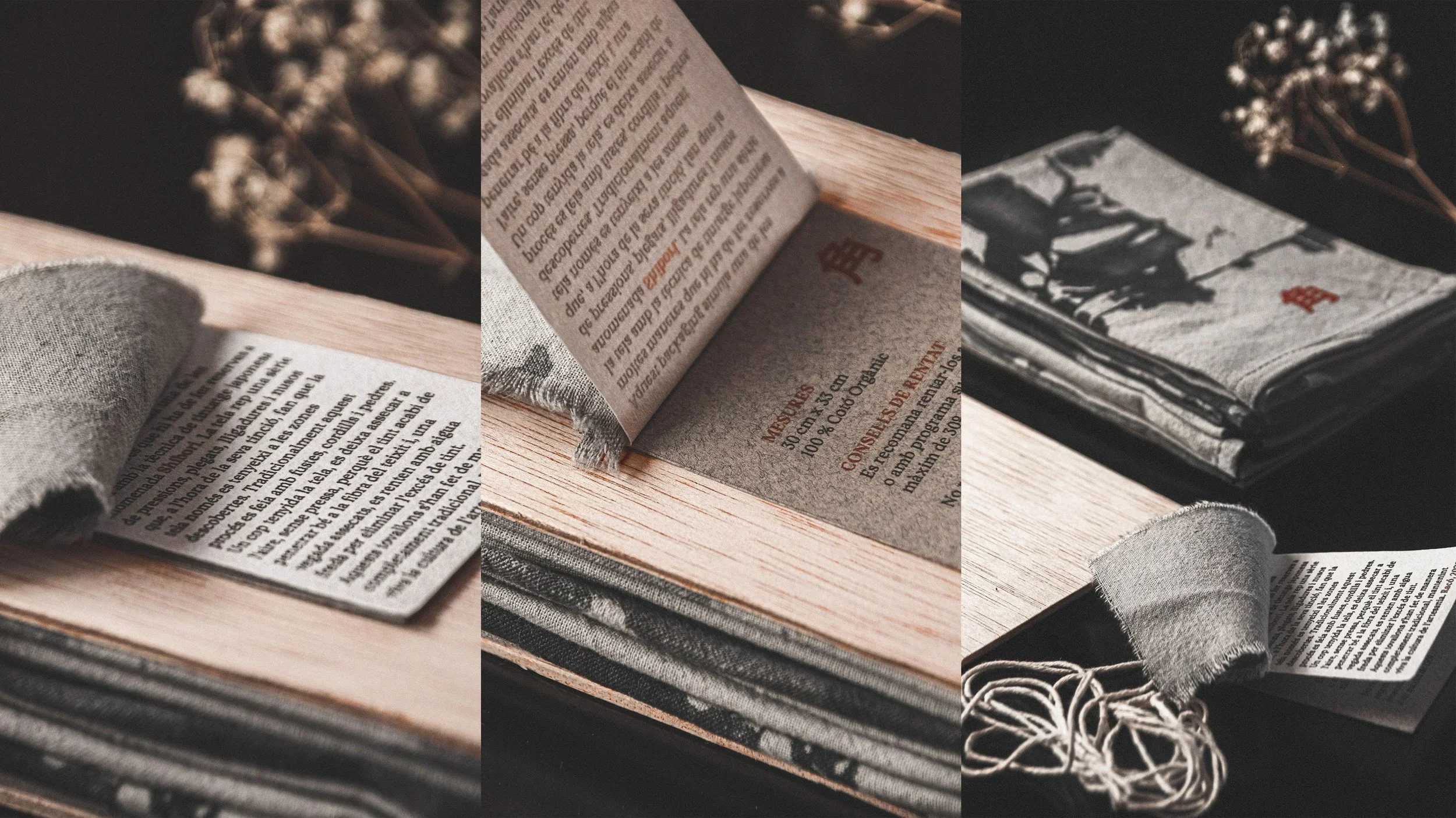 El último proyecto de Racó son las servilletas Kado, diseñadas y elaboradas de manera completamente artesanal siguiendo la técnica milenaria de teñido japonés Shibori, donde se prepara la tela mediante pliegues, presiones, ataduras y nudos para que al sumergirlo en el tinte, solo se tiñan las zonas descubiertas, creando estampados únicos en cada pieza. El packaging imita el proceso de plegado necesario para poder generar los estampados. Una nueva historia donde cada pieza está impregnada de sensaciones naturales y artísticas.